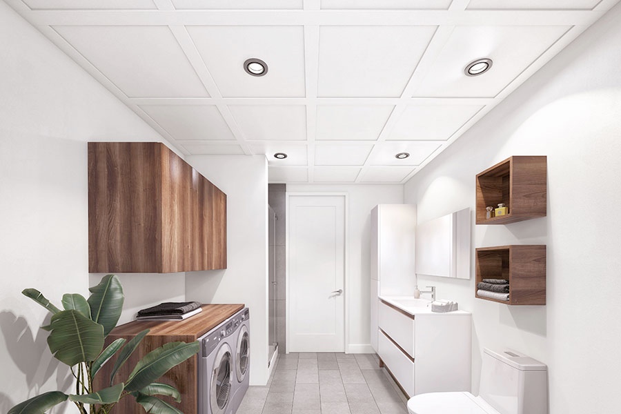 - Seulement 1 3/4 po de distance entre la structure et votre nouveau plafond vous permettant ainsi de maximiser la hauteur de la pièce, tout en gardant un accès à tous les conduits, tuyaux ou câbles électriques.