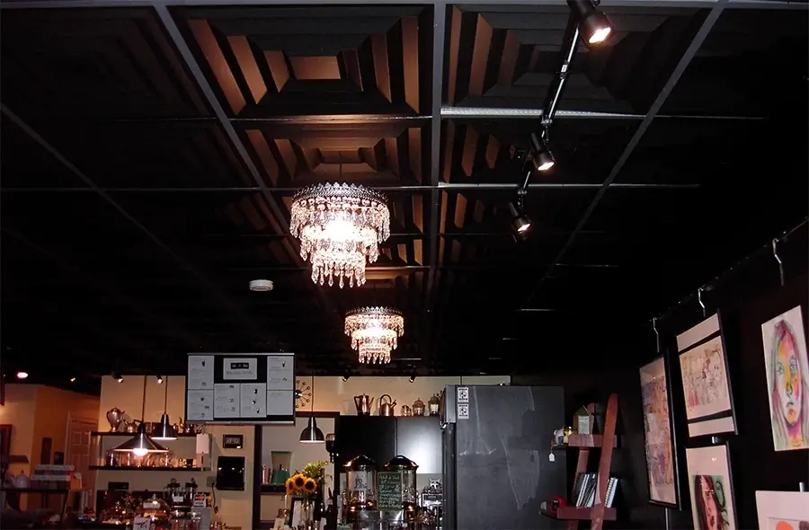 Ces tuiles se distinguent des vieux panneaux industriels en fibre de carton que vous connaissez bien. Elles ne produisent pas de poussière et sont étanches à l’eau, éliminant ainsi le risque de formation de bactéries et de moisissures. Fabriquées à partir d'un vinyle pur, ces tuiles sont simples à nettoyer et à entretenir. Une fois que vous les aurez insérées dans les rails de suspension conventionnels (grille de suspension standard - barres en T de 1 po ou 15/16 po), vous serez ravis du résultat.