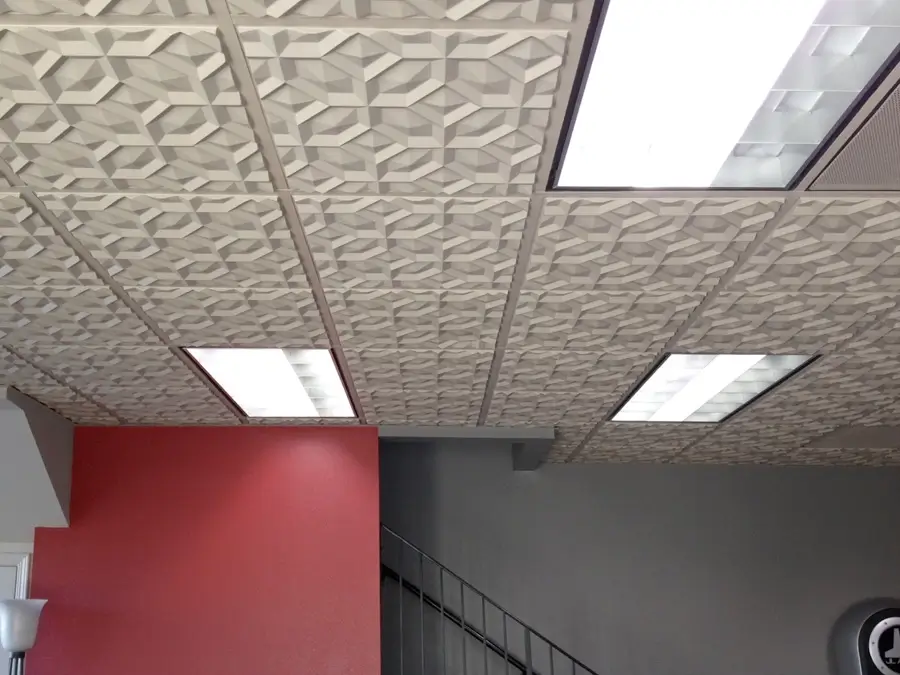 Ces tuiles se distinguent des vieux panneaux industriels en fibre de carton que vous connaissez bien. Elles ne produisent pas de poussière et sont étanches à l’eau, éliminant ainsi le risque de formation de bactéries et de moisissures. Fabriquées à partir d'un vinyle pur, ces tuiles sont simples à nettoyer et à entretenir. Une fois que vous les aurez insérées dans les rails de suspension conventionnels (grille de suspension standard - barres en T de 1 po ou 15/16 po), vous serez ravis du résultat.
