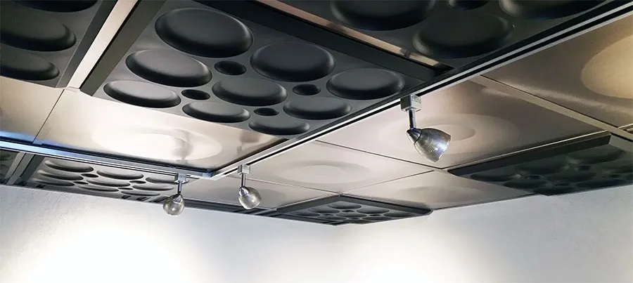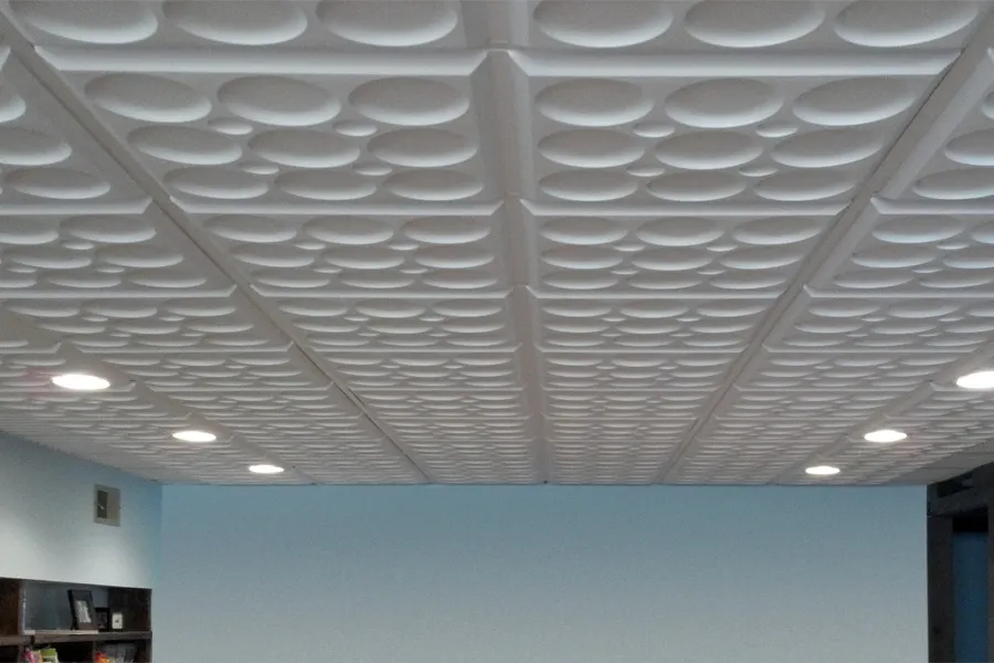 Ces tuiles se distinguent des vieux panneaux industriels en fibre de carton que vous connaissez bien. Elles ne produisent pas de poussière et sont étanches à l’eau, éliminant ainsi le risque de formation de bactéries et de moisissures. Fabriquées à partir d'un vinyle pur, ces tuiles sont simples à nettoyer et à entretenir. Une fois que vous les aurez insérées dans les rails de suspension conventionnels (grille de suspension standard - barres en T de 1 po ou 15/16 po), vous serez ravis du résultat.